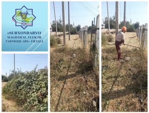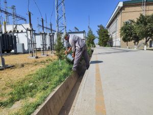 «Toshkent shahar magistral elektr tarmoqlari» filiali tasarrufidagi 220/110/35/10/6 kV kuchlanishli «Qo‘yliq» podstansiyasini obonlashtirish va ko‘kalamzorlashtirish maqsadida podstansiya xodimlari tomonidan sug‘orish va axlatlarni tozalash ishlari olib borilmoqda.