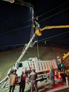Qibray tumanida joylashgan 35 kV kuchlanishli elektr uzatish L- Istiqlol 35 kV kuchlanishli havo tarmog'iining 2-3-raqamli tayanch ustunlari orasidagi osilgan simlarni ko'tarish ishlari olib borildi.