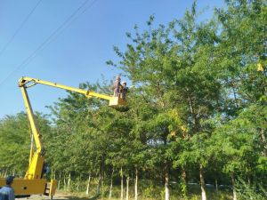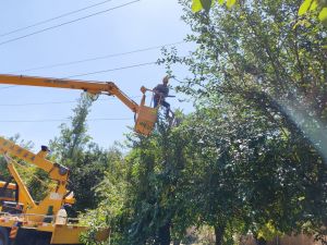“Navoiy magistral elektr tarmoqlari” filialining Yuqori kuchlanishli havo tarmoqlari xizmati xodimlari tomonidan 110 kV kuchlanishli L-X-5-25-110 kV havo tarmog’i ostigagi (muhohaza zonasi maydonida) daraxtlarning o‘sib ketgan shoxlarini qisqartirish ishlari olib borildi.