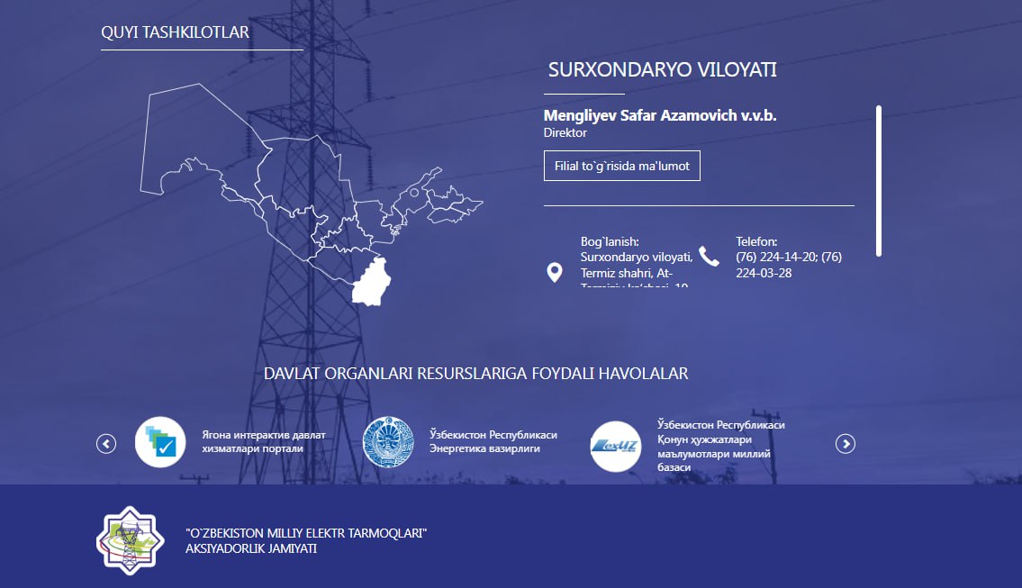 “Surxondaryo magistral elektr tarmoqlari” AJ filiali axborot xizmati
