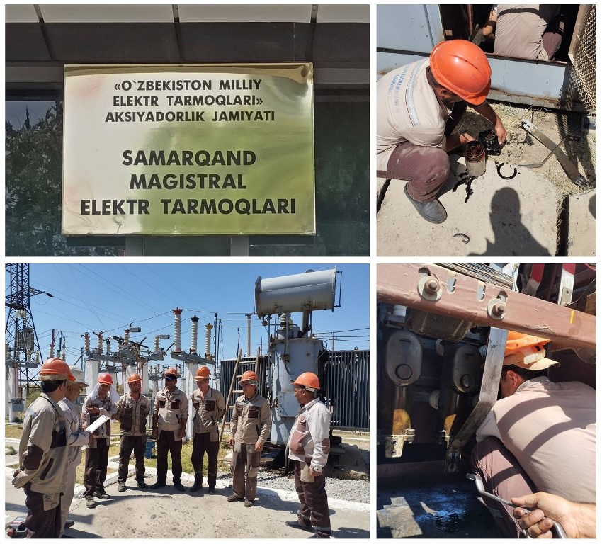 "Samarqand magistral elektr tarmoqlari" filiali mutaxassislari tomonidan 35/6 kV kuchlanishli “Shoʻr” podstansiyasining T-1 transformatori rejali joriy taʼmirdan oʻtkazilmoqda.