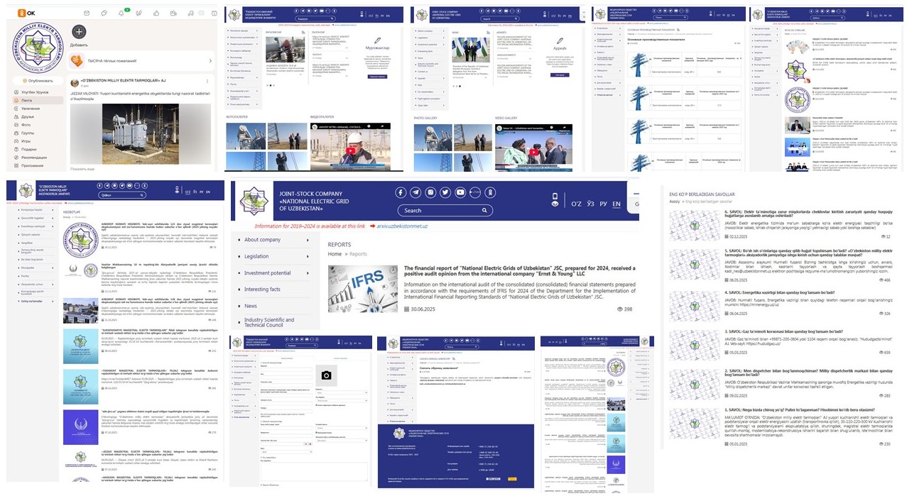⇒ 2025-yil 30-iyul sanasida Aksiyadorlik jamiyati boshqaruvi raisi tomonidan imzolangan 150-son buyruqqa asosan Ochiq maʼlumotlar portali hamda rasmiy veb-sayt sahifalariga O‘zbekiston Respublikasi Prezidentining 2021-yil 16-iyundagi “Davlat organlari va tashkilotlarining faoliyati ochiqligini taʼminlash, shuningdek, jamoatchilik nazoratini samarali amalga oshirishga doir qo‘shimcha chora-tadbirlar to‘g‘risida”gi PF-6247-sonli Farmonida belgilab berilgan tartibdagi kengaytirilgan maʼlumotlar (ilovaga muvofiq 20 ta bandda belgilab berilgan) yuklanib, hisobotlar o‘z vaqtida taqdim etilmoqda.