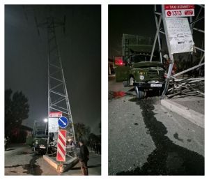 Юк автомобиль урилган металл конструкцияли таянч устуни тикланмоқда