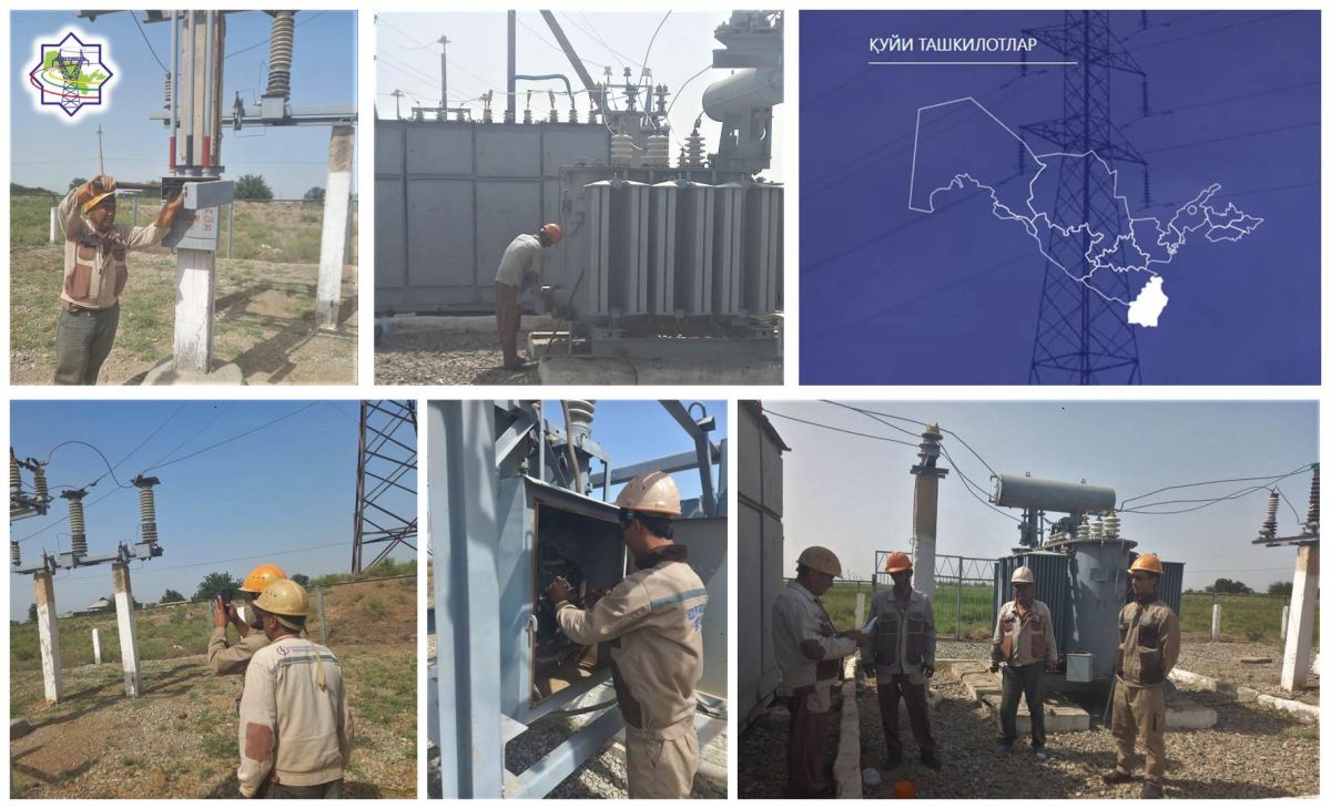 Мисол учун, мутахассислар Музрабод туманида жойлашган 35/10 кВ кучланишли «Хошман» подстанциясининг Т-1 трансформатор қурилмасидаги электр ускуналари ва релели ҳимоя тизимига оид жиҳозларни жорий таъмирлашмоқда. Шунингдек, подстанциядаги бошқа ускуна ва жиҳозларнинг техник-муҳандислик кўрсаткичларини доимий назоратга олиш бўйича тегишли амалиётлар бажарилмоқда.