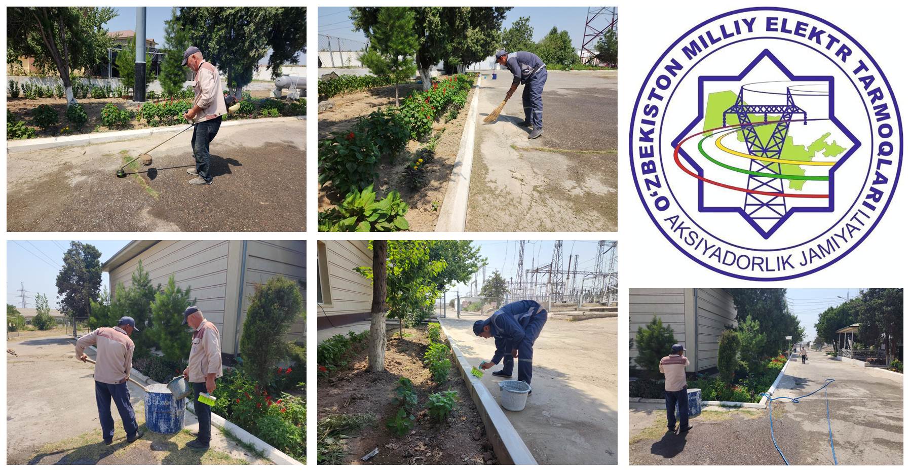 "Ўзбекистон МЭТ" АЖ "Наманган магистрал электр тармоқлари" филиалига таркибидаги 220/110/10 кВ кучланишли «Сардор» подстанцияси эстетик ҳолатини яхшилаш мақсадида ишчи-ходимлари томонидан тозалаш ва ободонлаштириш ишлари олиб борилди.