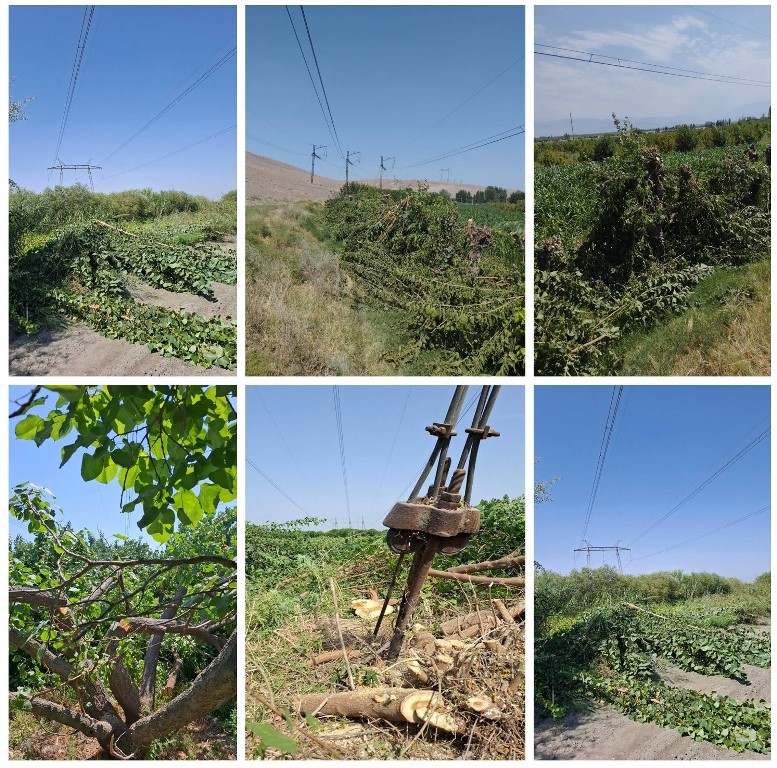 Профилактика ишлари доирасида тармоқ трассаси бўйлаб ўсиб чиққан ва симларга тегиши эҳтимоли бўлган дарахт шохлари калталаниб тозаланди.