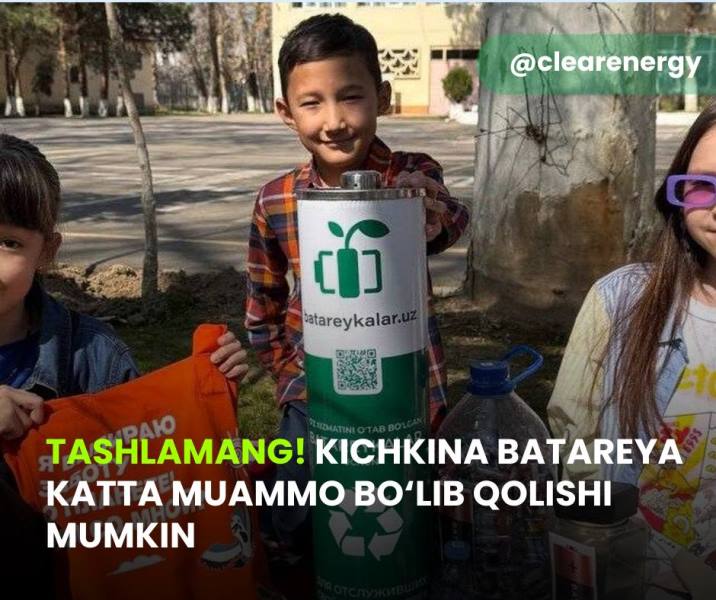 Ҳатто битта батареяни ҳам контейнерга ташлаш – бу шаҳримиз ва табиатимизни тоза сақлашга қўшган ҳиссамиздир.