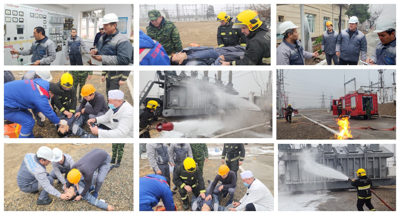 ✅ Амалий машғулот 220/110/10 кВ кучланишли «Сардор» подстанциясида мавжуд “200 МВА қувватли АТ-2 автотрансформаторининг кирувчи-110 кВ «Б» фазасида юзага келган носозлик сабабли ёнғин келиб чиқди” шартли ном остида ўтказилди.