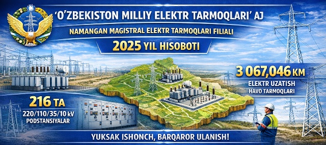 “O‘zbekiston milliy elektr tarmoqlari” aksiyadorlik jamiyati “Namangan magistral elektr tarmoqlari” filiali tomonidan 2025-yilda bajarilgan ishlar yuzasidan hisobot maʼlumotnomasi.