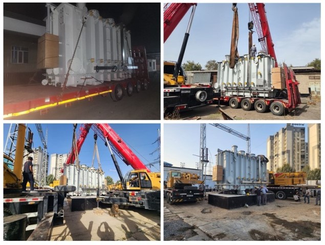 Misol uchun, yuqori kuchlanishli energetika obyektiga 63 MVA quvvatli transformatori olib kelinib, o‘rnatish (montaj) ishlari amalga oshirilmoqda.