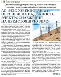 «Правда Востока»: АО "НЭС УЗБЕКИСТАНА": ОБЕСПЕЧЕНА НАДЕЖНОСТЬ ЭЛЕКТРОСНАБЖЕНИЯ НА ПРЕДСТОЯЩУЮ ЗИМУ