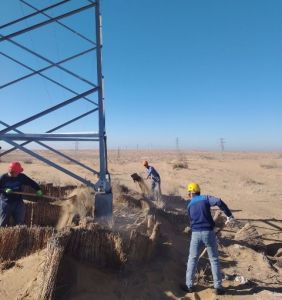 Тупроққалъа тумани ҳудудидан кесиб ўтган юқори кучланишли электр узатиш тармоқлари таянчларининг очилиб қолган остки қисмларини қум билан тўлдириш ишлари мутахассислар томонидан амалга оширилмоқда.