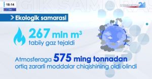 Юртимизда умумий қуввати 5 582 МВт бўлган 15 та қуёш фотоэлектр станцияси ҳамда 5 та шамол электр станцияси «яшил» энергия ишлаб чиқармоқда.
