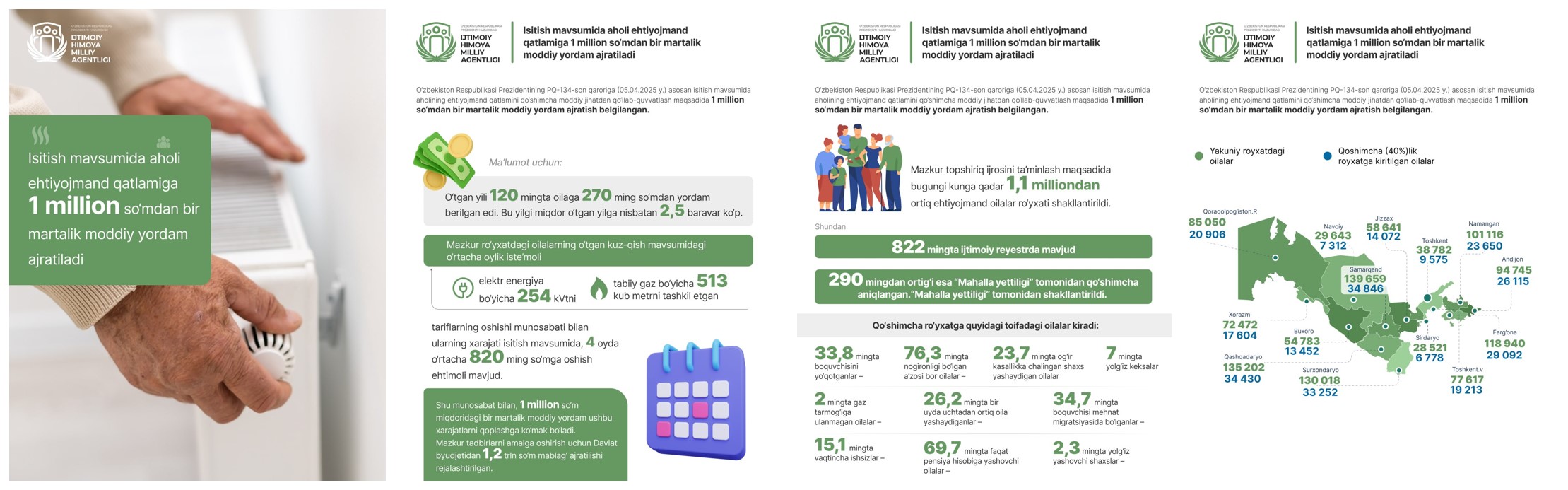 Иситиш мавсумида эҳтиёжманд оилаларга 1 миллион сўмдан моддий ёрдам берилади