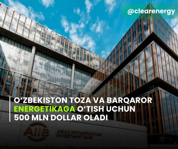 Осиё инфратузилма инвестициялари банки “яшил ўтиш” дастури учун ярим миллиард доллар ажратмоқда.
