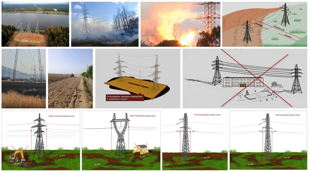 Ўзбекистон Республикаси Вазирлар Маҳкамасининг 2018 йил 26 декабрдаги 1050-сон “Электр тармоғи хўжалиги объектларини муҳофаза қилиш қоидаларини тасдиқлаш тўғрисида“ги қарорига мувофиқ, электр тармоғи хўжалиги объектларининг барқарор ишлаши учун, "муҳофаза зоналари"да экологик зарар ва ёнғин келтириб чиқариши мумкин бўлган бирон-бир ҳаракатни содир этиш тақиқланган.